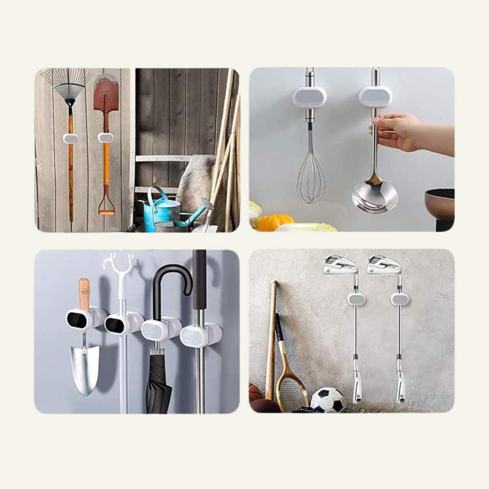 ¿Cansado de ver trapeadores y escobas tirados o ensuciando el suelo? Olvídate de los soportes con taladro que dañan las paredes.