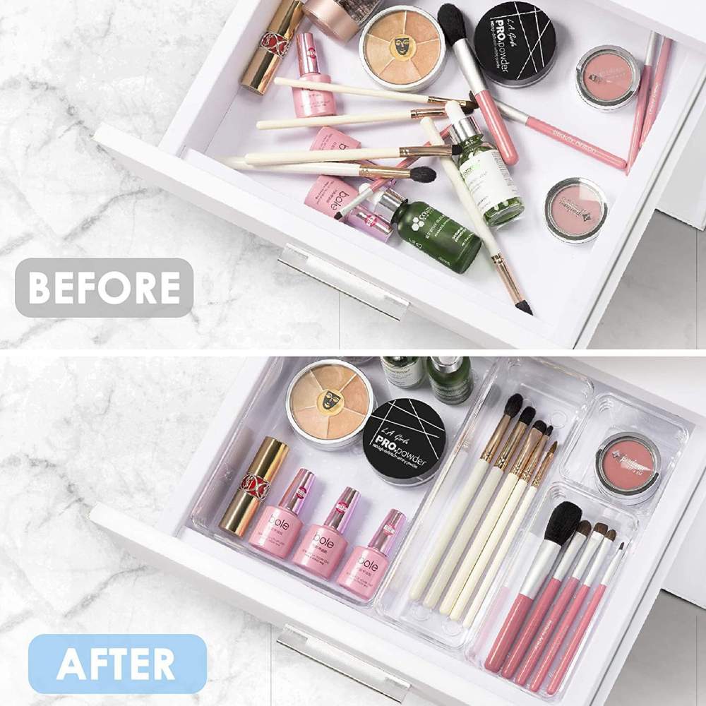 - Material de alta calidad: El organizador de cajones está hecho de plástico no tóxico que se puede utilizar de forma segura. El diseño transparente facilita encontrar lo que necesitas rápidamente.