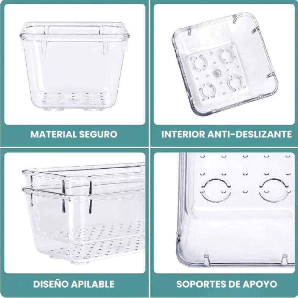 - Diseño apilable: Estos contenedores de almacenamiento transparentes se apilan entre sí para ayudar a maximizar tu espacio. Utilízalos uno al lado del otro para mantenerte organizado. El color transparente te permite ahorrar tiempo y encontrar lo que necesitas de forma rápida y sencilla.