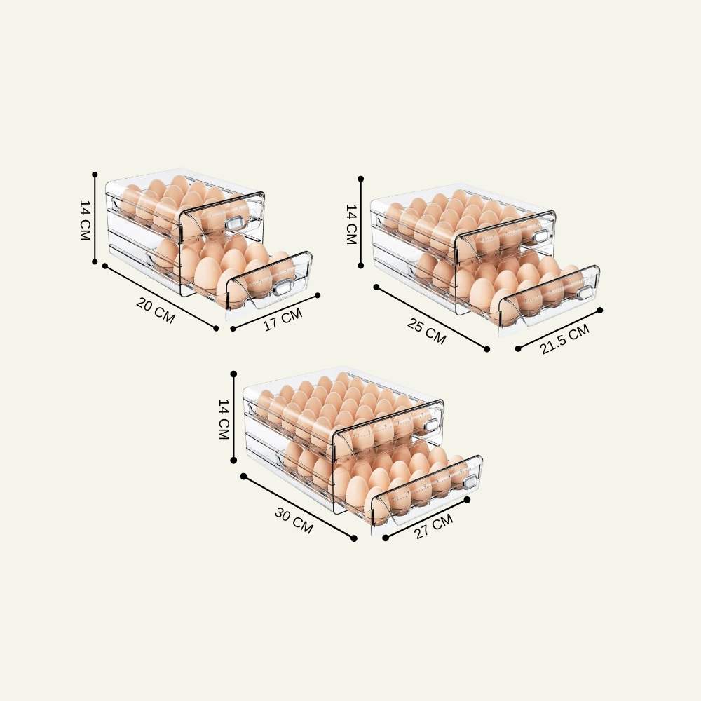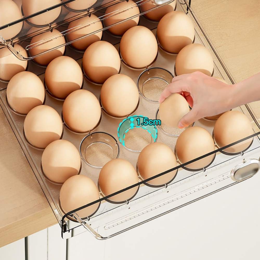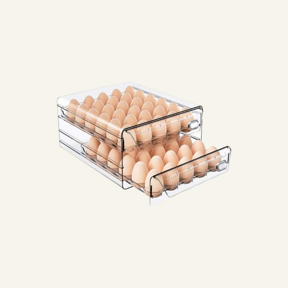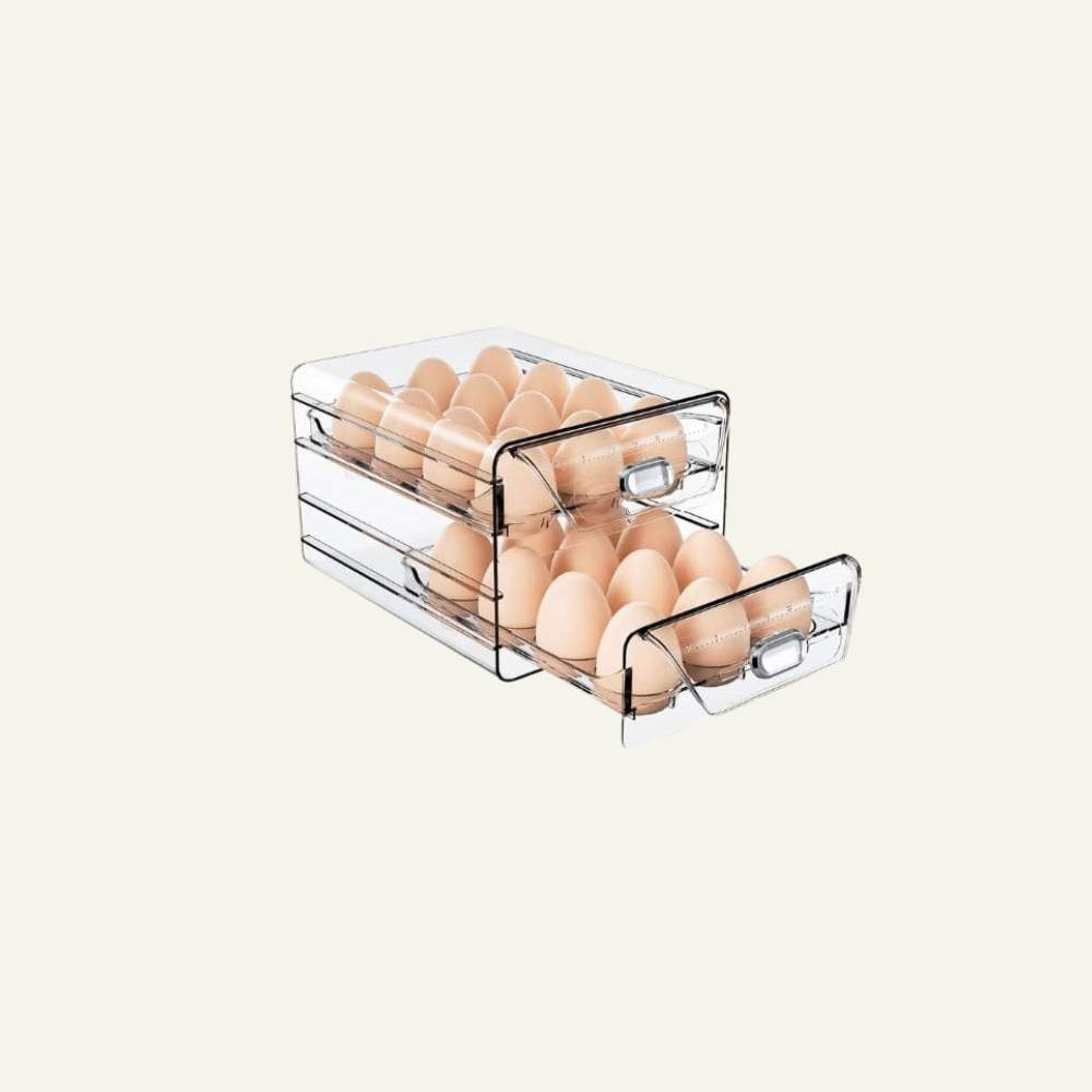 Por esta razón, el Organizador de Huevos es la solución ideal para el almacenamiento en tu cocina. Con su diseño transparente y cajón organizador, puedes acceder fácilmente a todos tus huevos y mantener un control preciso sobre su frescura gracias a la escala de tiempo incorporada.
