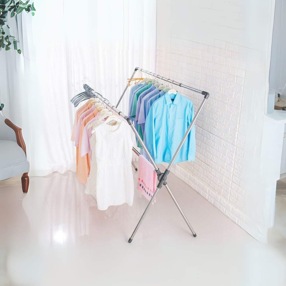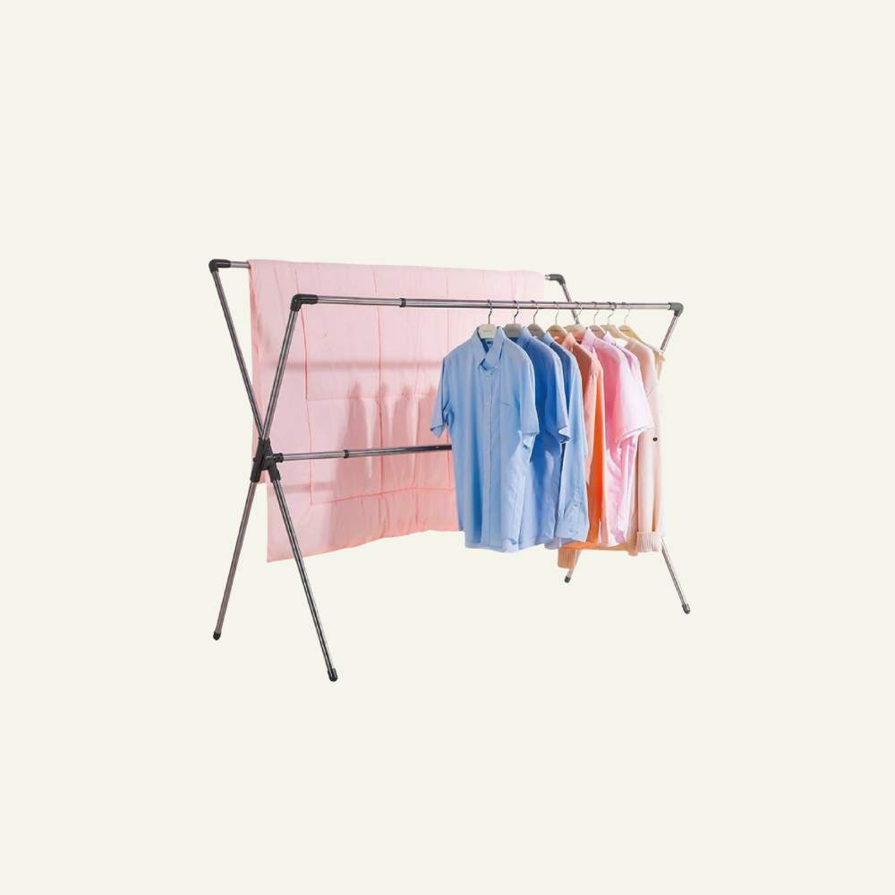 Por eso, este Tendedero de Ropa Plegable es ideal para aquellos que buscan una manera inteligente de organizar su ropa sin sacrificar espacio y siempre al alcance. Además, con su diseño en forma de X podrás plegarlo en el momento que quieras y su gran capacidad te permitirá colocar toda la ropa que quieras sin preocupaciones.