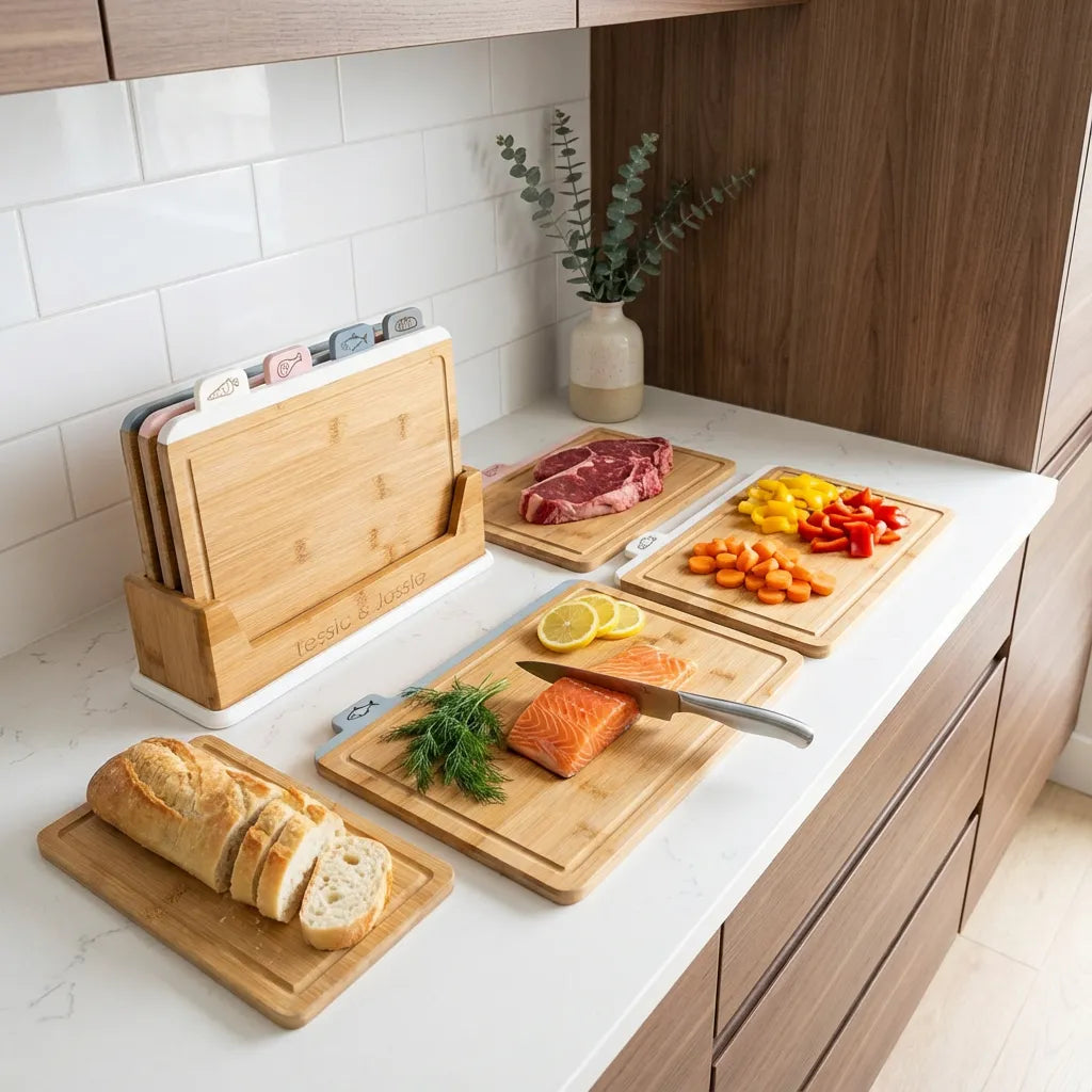 Este set de tablas de cortar está diseñado para quienes disfrutan una cocina funcional, limpia y estética. Fabricadas en bambú natural de alta densidad, son resistentes, higiénicas y aportan un toque cálido y elegante al espacio.