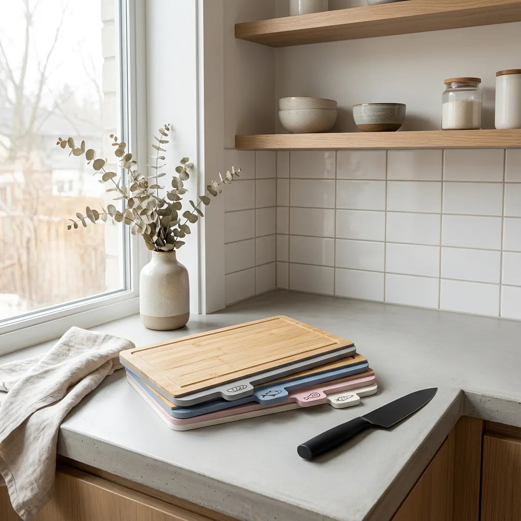 Material natural y duradero: bambú 100% ecológico, resistente a cortes y humedad.