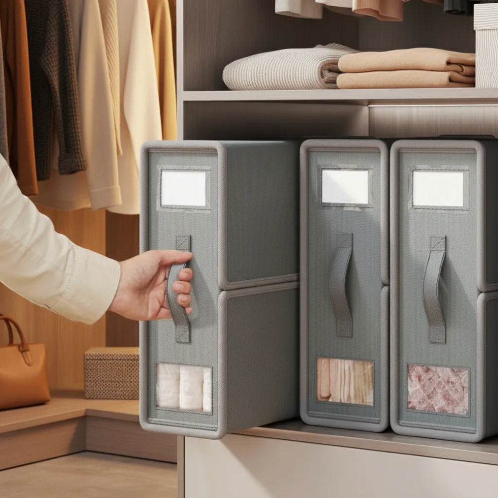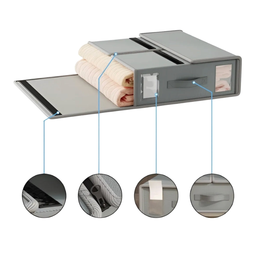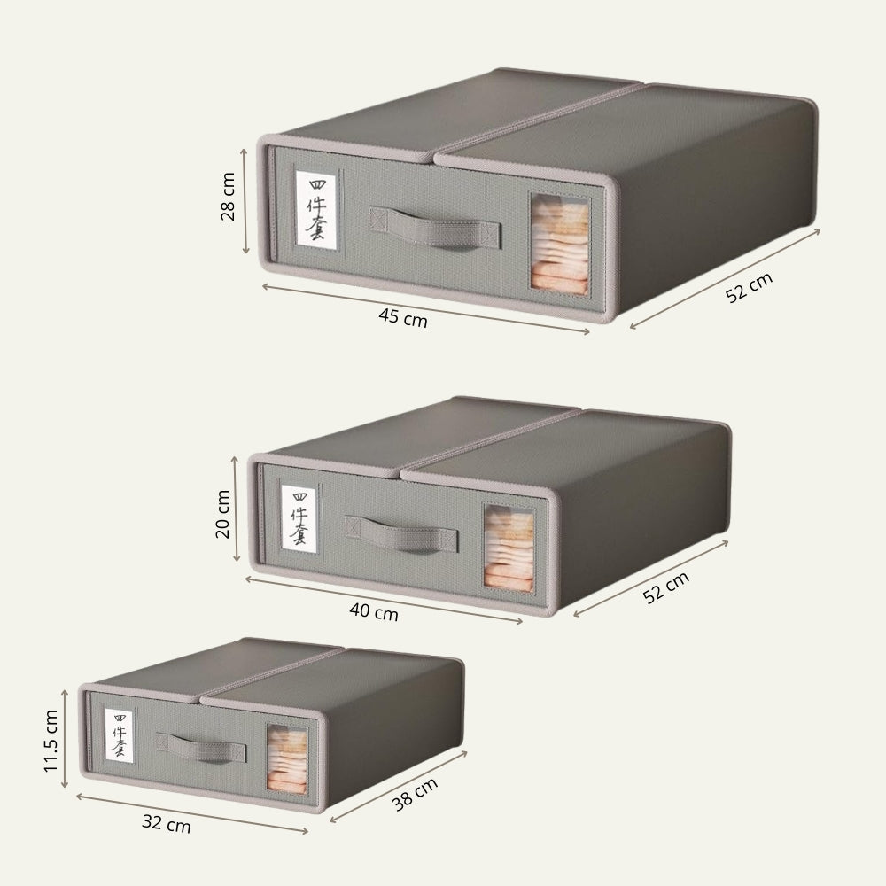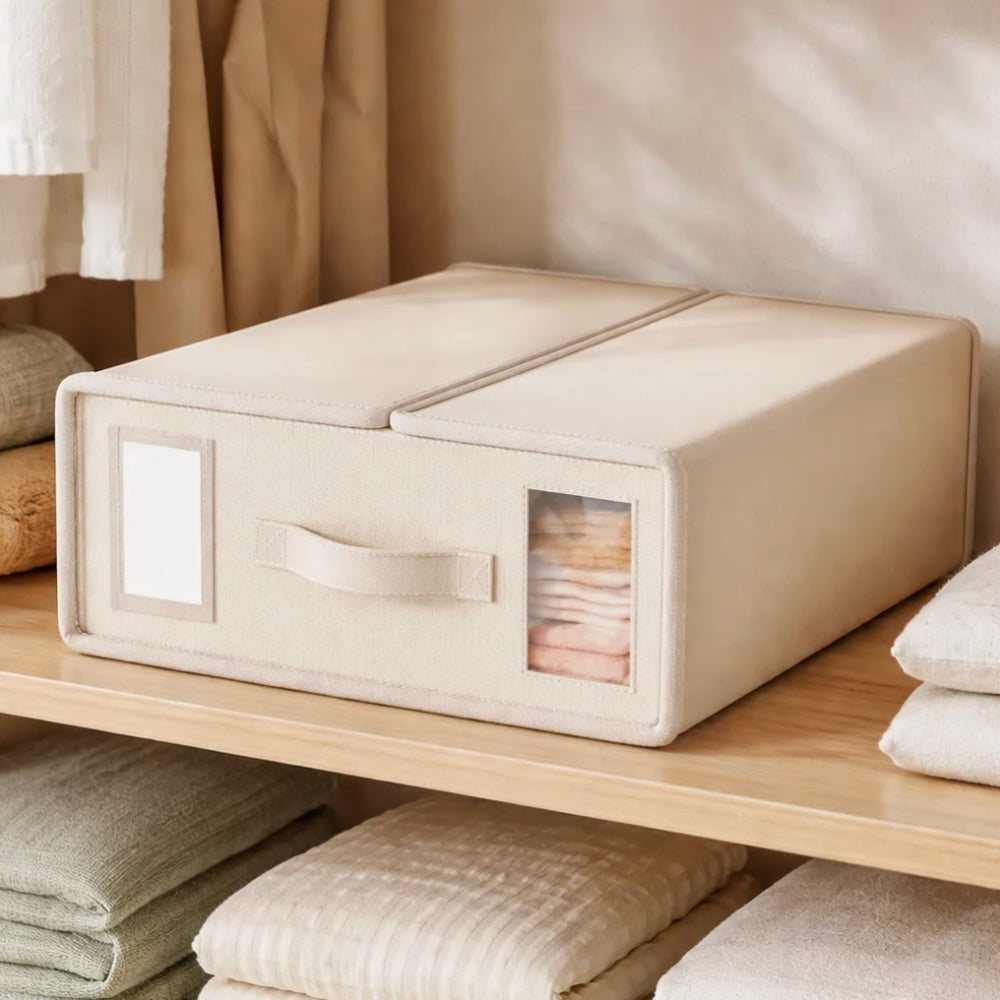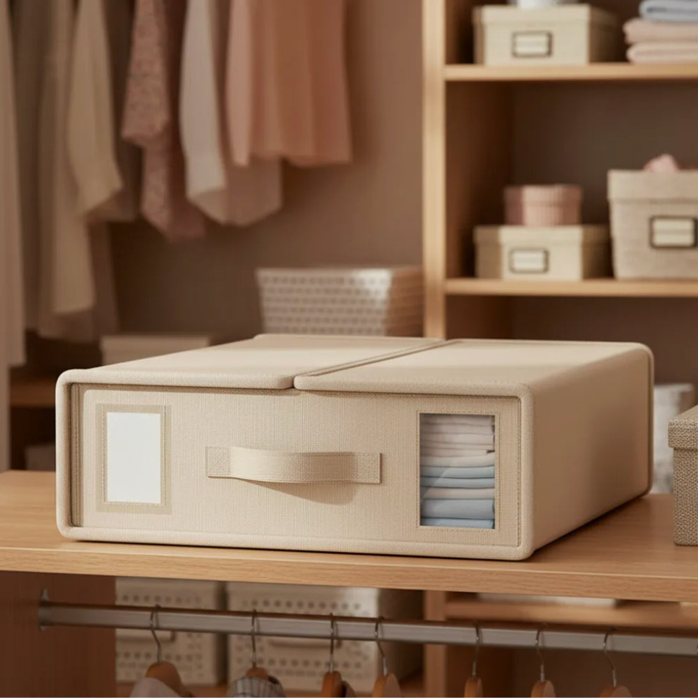 Con el Organizador Para Ropa de Cama, podrás simplificar el almacenamiento de tus sábanas y mantener todo ordenado y fácilmente accesible. Este organizador de gran capacidad está diseñado para almacenar un juego completo de sábanas, del tamaño deseado, manteniendo todo en su lugar y libre de polvo.