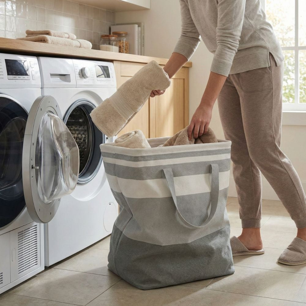 Uso recomendado: organización de ropa sucia, ropa de lavado, mantas o artículos de almacenamiento en dormitorios, baños o lavanderías.