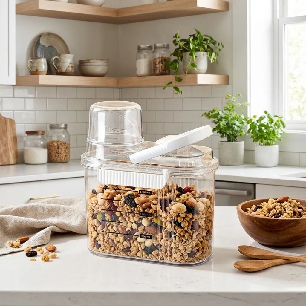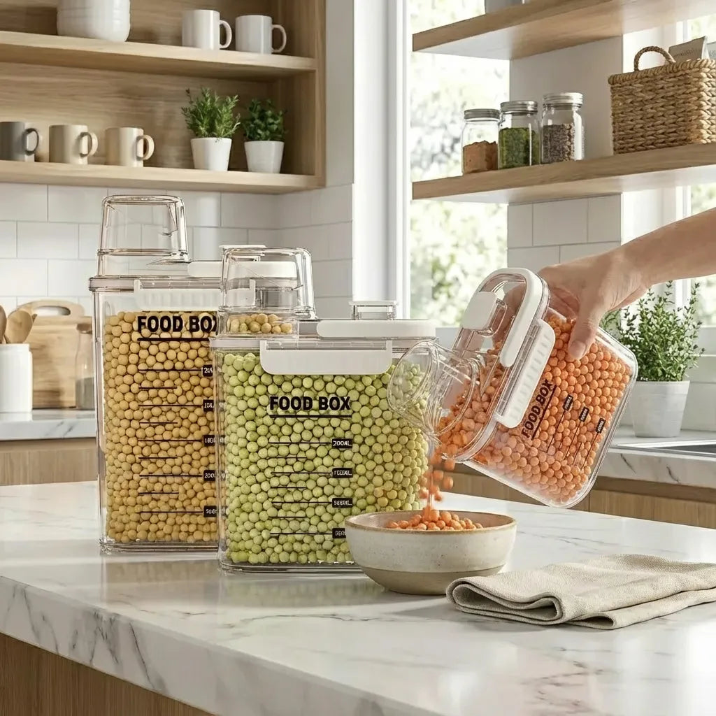 • Material resistente y libre de BPA: ideal para uso diario en cocina o despensa.