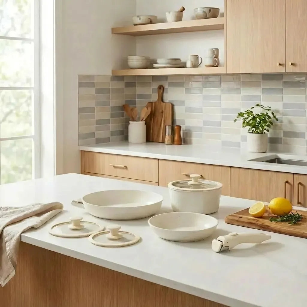 Imagina abrir tu gabinete y ver solo lo esencial: limpio, organizado, armonioso. Este set de cocina está diseñado para liberar espacio y también para liberar tu rutina. Desde cocinar hasta servir y guardar, todo fluye con un mismo conjunto inteligente. Es más que una batería de cocina, es una invitación a simplificar tu día a día, a recuperar el control sobre tu cocina y a transformar el caos en calma. Cocinar vuelve a sentirse bien.