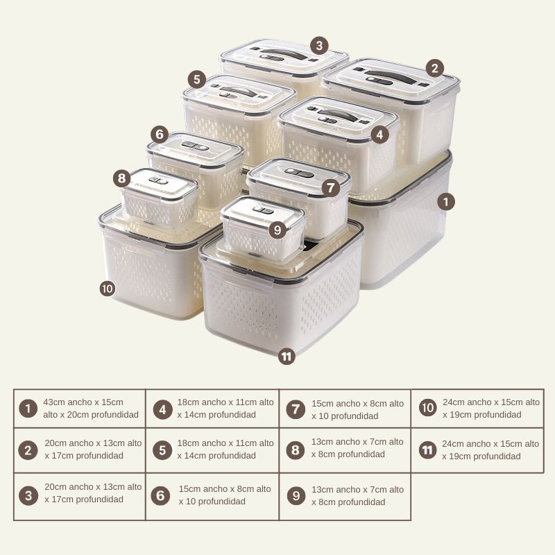 Kit recipiente x 7 pzs, Kit recipiente x 7 pzs cuadrado, Kit recipiente x 9 pzs, Kit recipiente x 11 pzs (Según elección)
