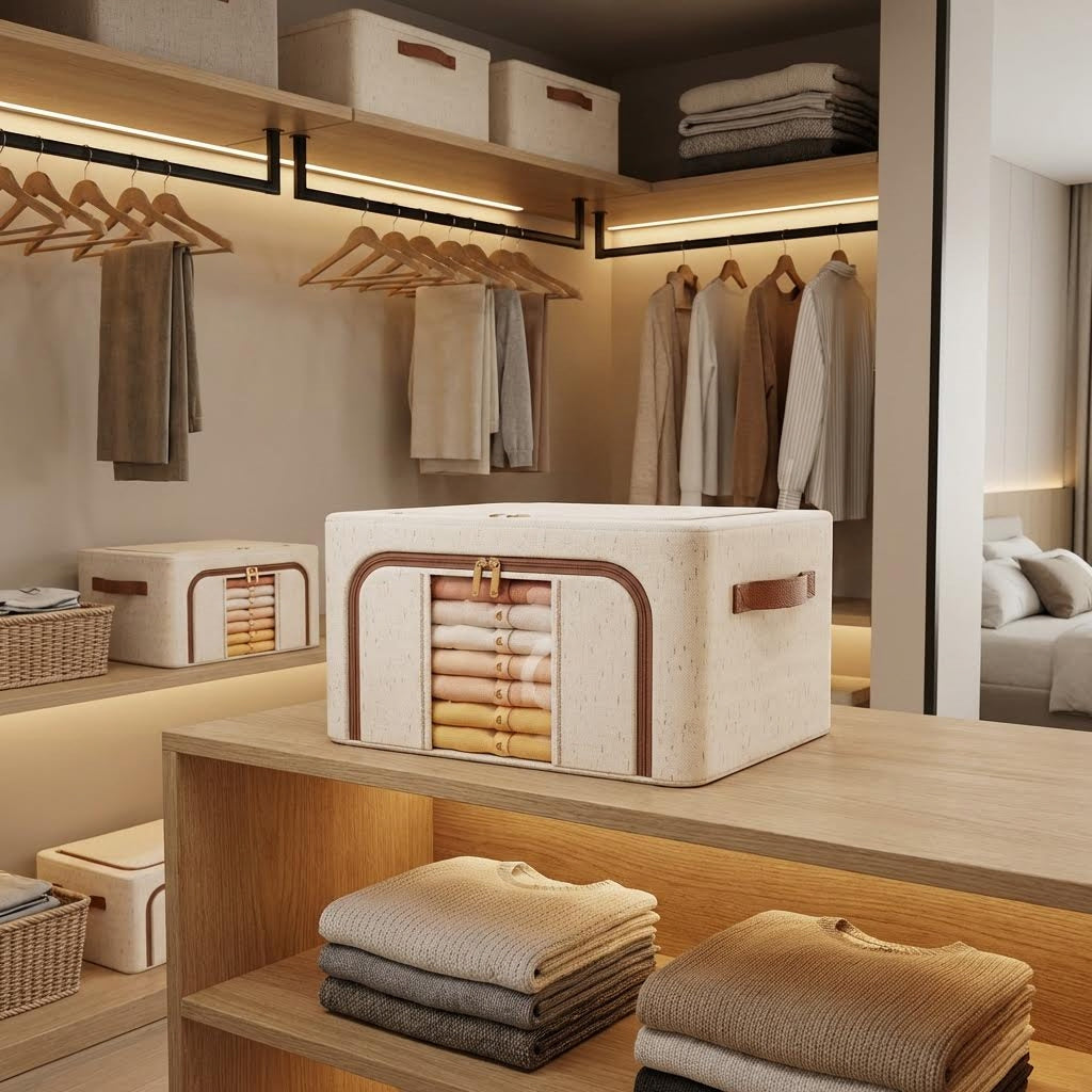 Estas Cajas Plegables organizadoras de ropa son una solución versátil y robusta diseñada para poner orden en armarios, cajones y cualquier espacio que necesite un extra de organización. Su estructura inteligente combina durabilidad con un diseño que ahorra espacio.