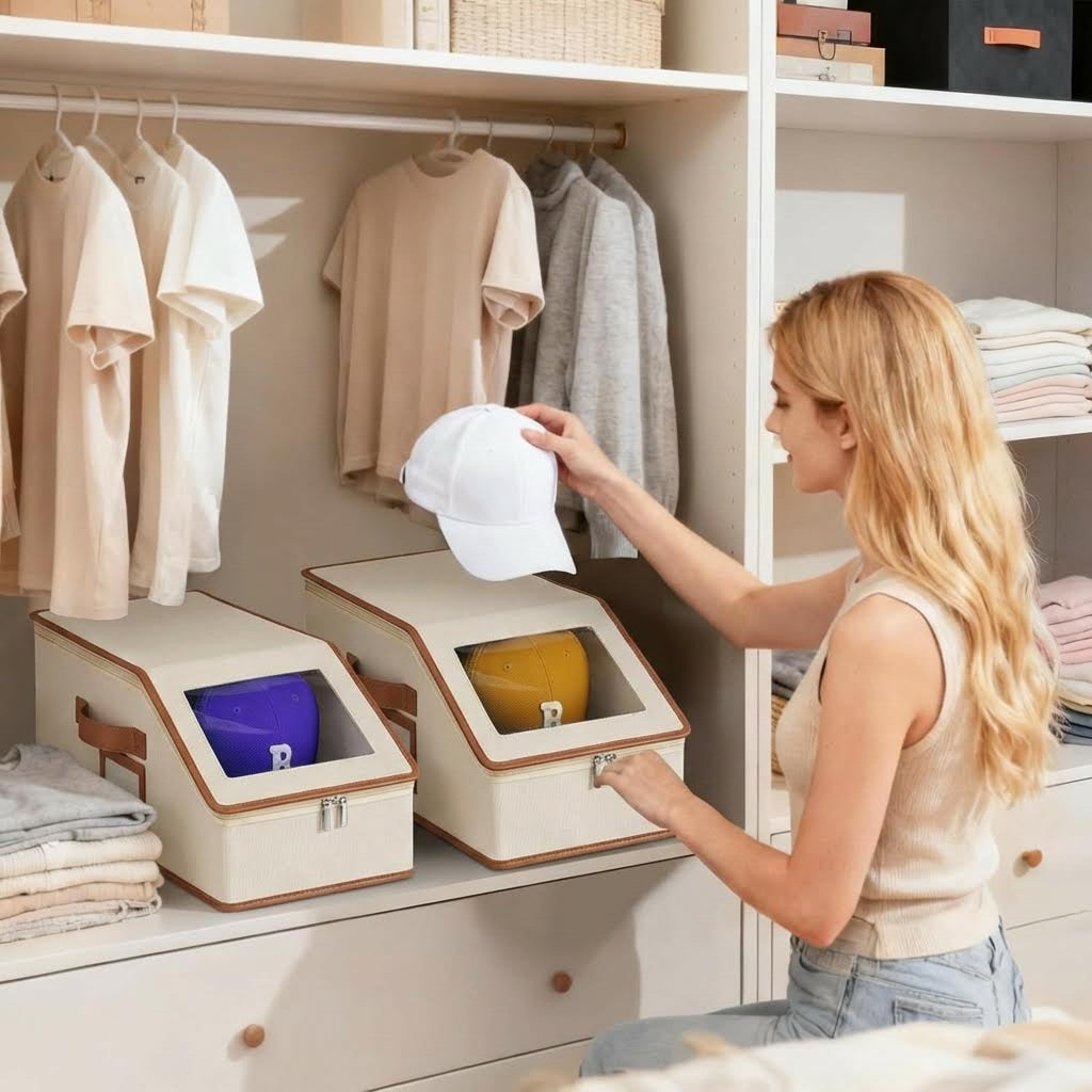 • Acceso Sencillo: Apertura frontal práctica que facilita guardar y sacar las gorras sin desordenar el resto del armario.