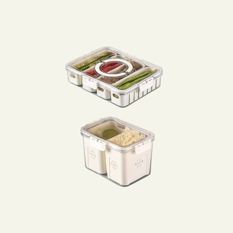 Despídete de los recipientes convencionales que aceleran el deterioro de tus alimentos. Con una mejor ventilación y espacios definidos, conservas frutas y vegetales frescos por más tiempo, evitas olores indeseados y haces que tu nevera se sienta siempre lista, fresca y organizada.